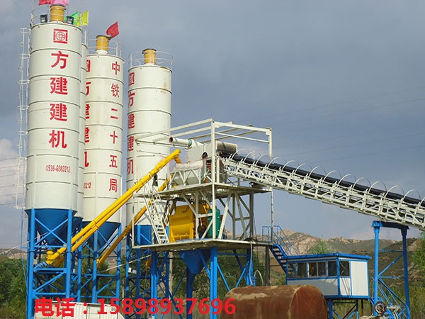 濰坊方建機械HZL60型混凝土攪拌樓產品結構特點: 一、采用同樣主機JS1000,最大生產率可達60m3/h,比一般的提高20%,即自動循環(huán)時1分鐘一個循環(huán)(也可以說同樣生產率裝機功率數下降,能耗降低),其主要原因是增設了一個砂石計量斗。軸端密封采用分體式,即軸端密封 與軸端潤滑是分開的。 二、砂石計量斗與主機架布置在一起有3個特點。 1料斗底部氣缸開門卸料快,約8秒左右。 2后臺可用料臺式裝載機上料或懸臂拉鏟。 3采用料斗式裝載機上料,后臺布置緊湊,三個骨料倉一字形排列,使裝載機上料方便,占地少,總體布置美觀。 三、所有物料采用稱重法計量,保證計量精度穩(wěn)定可靠(有的用水流量 計),稱量選用高精度傳感器與電子秤,計量精度高達±1%。 四、可以同時采用四種骨料,一種水,三種水泥(含粉煤灰等摻和料),二種粉狀和二種液態(tài)外加劑(由用戶選擇)。 五、設有粉狀和液態(tài)外加劑儲存、輸送、自動計量系統。 六、電氣元件、氣路管件等關鍵件選用進口件,如限位開關等。 七、控制室隔離,螺旋機振動隔離,減少計量時振動影響及延長控制系統壽命等。 八、在砂石上料形式上,我公司設計有鋼絲繩提升料斗式和大傾角50°皮帶輸送機兩種供用戶選擇。