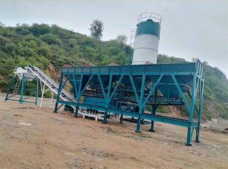 免基礎混凝土攪拌站工作原理: 混凝土攪拌站分為四個部分:砂石給料、粉料(水泥、粉煤灰、膨脹劑等) 給料、水與外加劑給料、傳輸攪拌與存儲.其工作流程:攪拌機控制系統上電后,進入人- 機對話的操作界面,系統進行初始化處理,其中包括配方號、混凝土等級、坍落度、生產方量等.根據稱重對各料倉、計量斗進行檢測,輸出料空或料滿信號,提示操作人員確定是否啟動攪拌控制程序.啟動砂、石皮帶電機進料到計量斗;打開粉煤灰、水泥罐的蝶閥,啟動螺旋機電機輸送粉煤灰、水泥到計量斗;開啟水倉和外加劑池的控制閥使水和外加劑流入計量斗.計量滿足設定要求后開啟計量斗斗門,配料進入已啟動的攪拌機內攪拌混合,到設定的時間打開攪拌機門,混凝土進入己接料的攪拌車內。